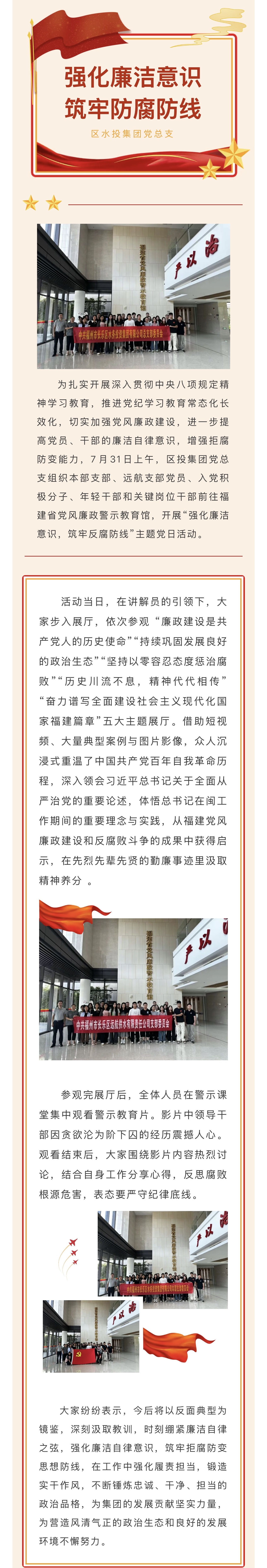 区水投集团党总支赴福建省党风廉政警示教育馆开展主题党日活动
