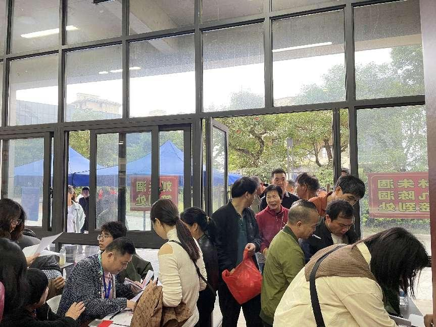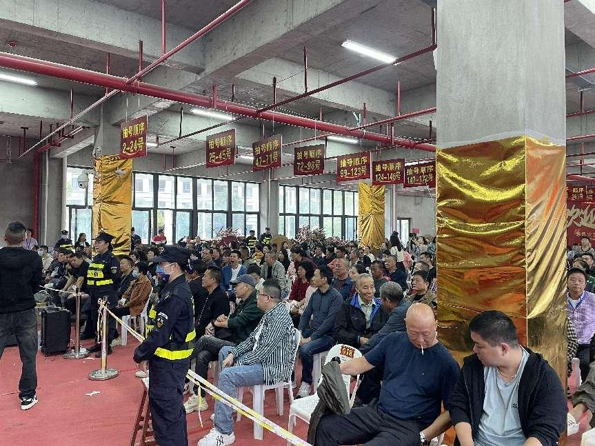 当天一早,被征收人陆续到达选房现场,根据所在自然村进行分组签到,并在材料核验无误后,按照顺序号坐到对应位置等待抽号开始。