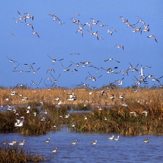 江河口国家湿地公园,位于长乐市潭头、梅花镇闽江入海口处,有河口水域、潮间带沙滩、红树林沼泽等7种湿地类型,是候鸟迁徙重要越冬地、水鸟集中分布区、众多珍稀濒危鸟种的栖息地。特别是在这里有一种神秘的鸟种,其行踪飘忽不定,人类对它所知甚少;这是一种极其濒危的鸟种,目前全球发现的不到50只。在神秘消失63年之后,它却又神奇出现, 学者们称它为“神话之鸟”,它就是黑嘴端凤头燕鸥,因其首次发现是在中国大陆境内,因此又被称为中华凤头燕鸥。省、市林业部门专家、学者多年的研究调查结果显示,闽江口湿地自然环境优越、生物多样性丰富、稀有物种众多,拥有动植物1084种,估计在此迁徙停歇的水鸟数量超过5万只。在2013年“美丽中国·湿地行”活动中被评为“中国十大最美湿地”。