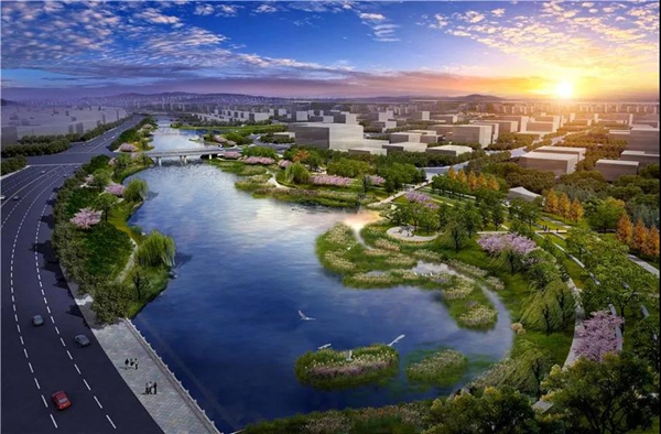 福州滨海新城将以东湖为核心,打造湖东河、漳江河、漳江支河、万沙河四条景观河道,并以此为纽带串连重要景观节点,形成滨海新城大数据产业园的滨水活力绿脉。
