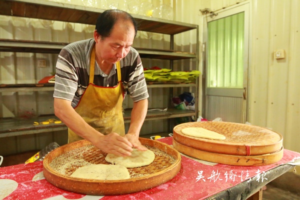 剁馅、擀面、揉皮、包馅、煎饼、包装……陈孝贤礼饼店里,他与爱人分工合作、忙而不乱。陈孝贤说,每逢中秋节前后及年底等旺季时段,他的礼饼店最多一天能卖出几百份礼饼。届时,顾客买饼都要提前预订。