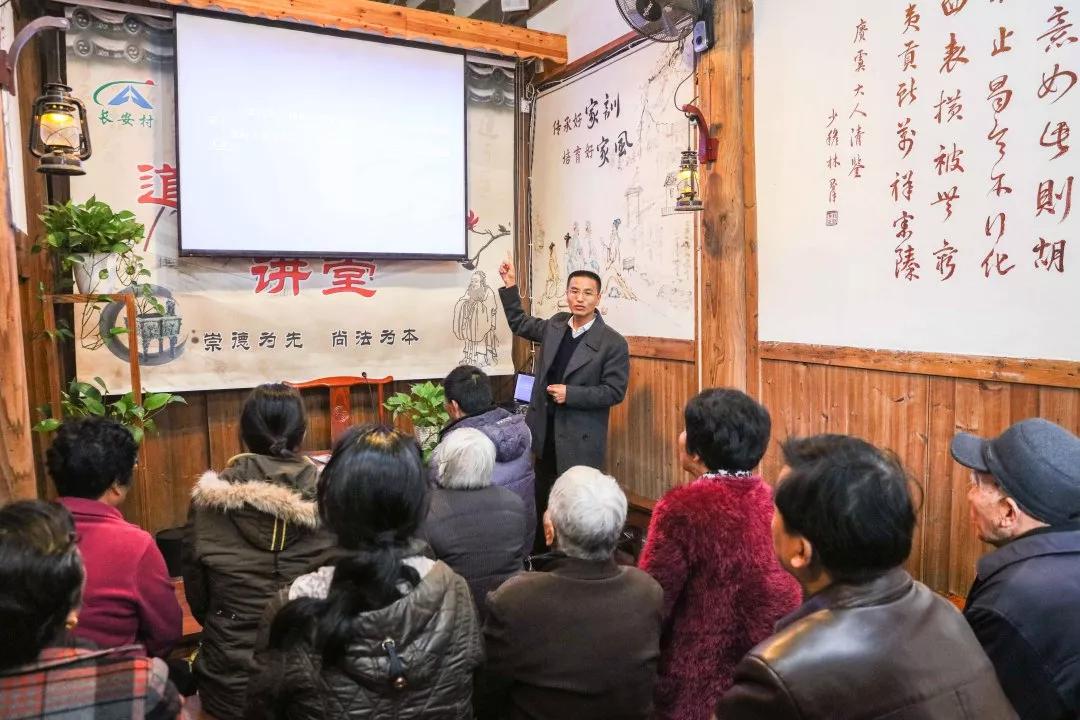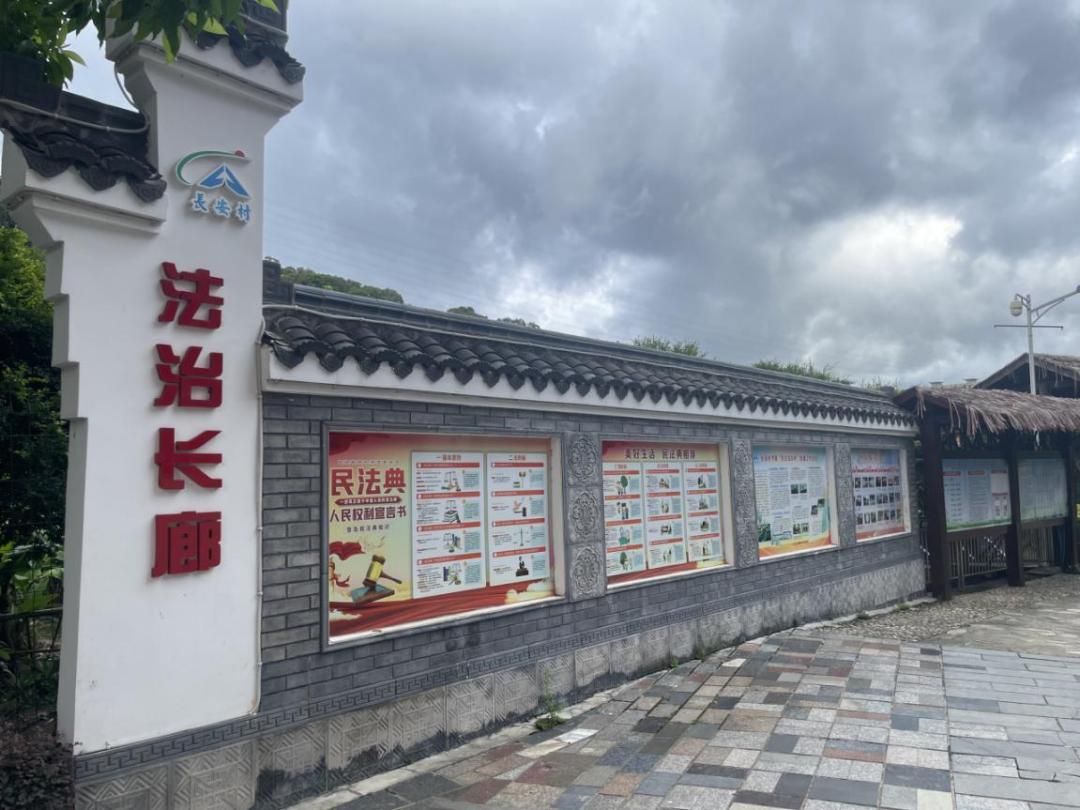 建强一批法治阵地矩阵,立足长安村侨乡特色与乡土风情,打造“沉浸式”法治文化传播平台。在村道两旁建设古韵古风的法治文化长廊与法治文化墙,以水墨画、漫画配格言形式解读法律知识;在党群服务窗口、农家书屋、法律图书角等公共场所摆放《中华人民共和国民法典》《中华人民共和国乡村振兴促进法》等涉农法律资料;依托乡村小广播、公共区域LED屏,常态化播发普法音频、海报,让村民在休闲漫步中“耳濡目染”学法律。