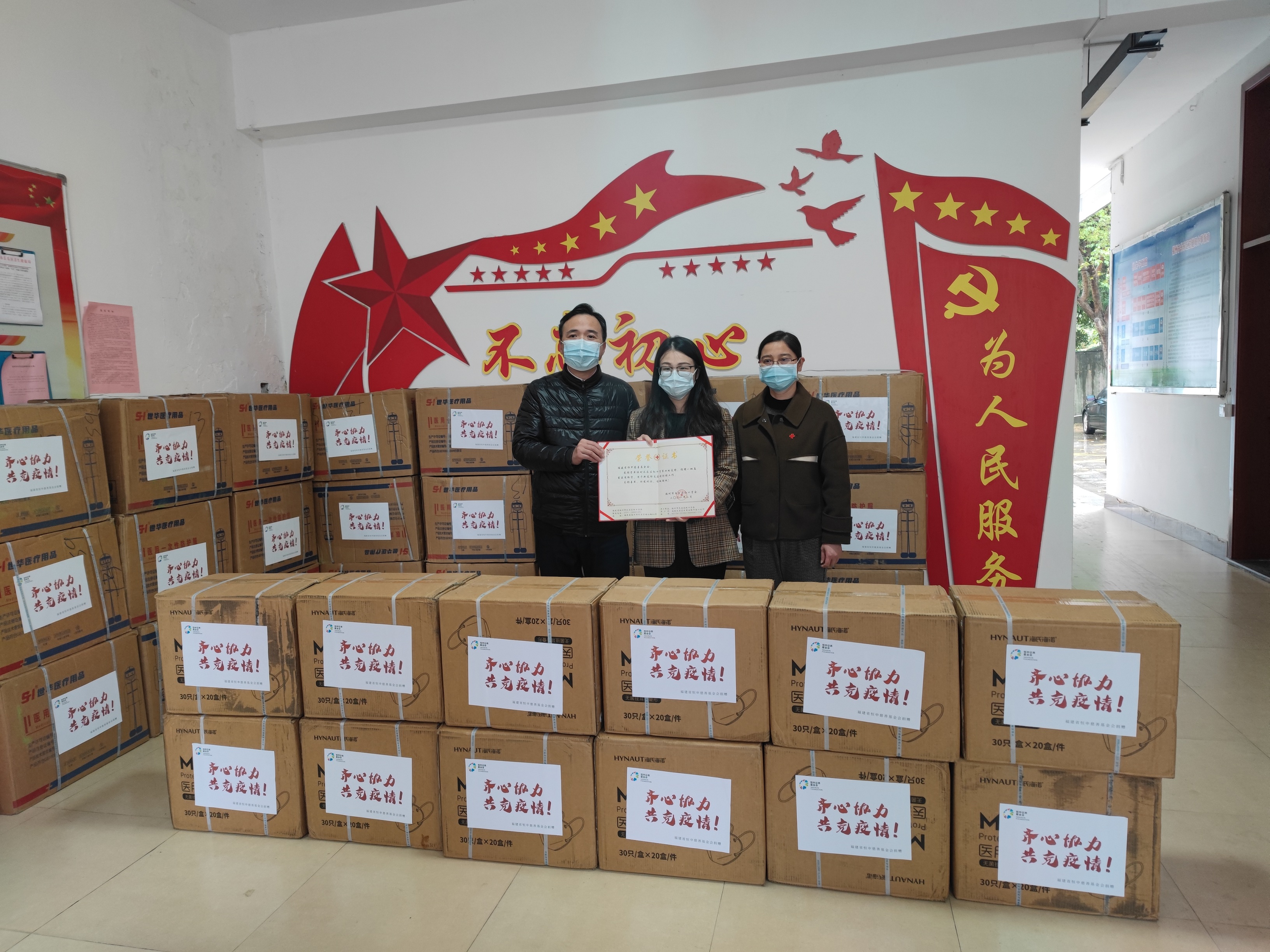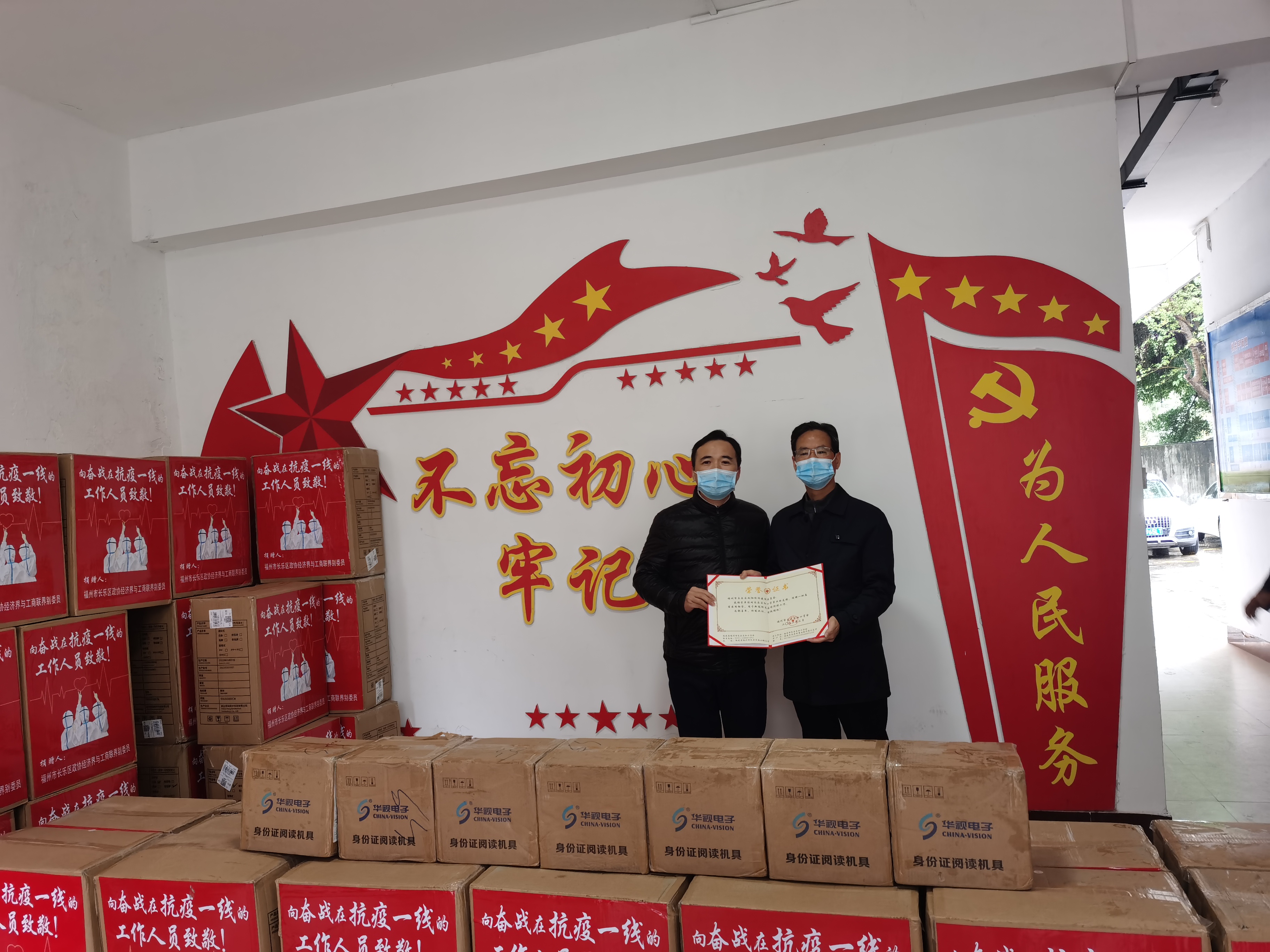 3月28日上午,福州市长乐区政协经济界与工商联界别委员、社会科学界联合会、新的社会阶层人士联谊会等爱心单位和个人勇于担当、主动作为了解到隔离衣和身份证阅读器短缺,向长乐区红十字会捐赠隔离衣16775件,身份证阅读器72台,价值约50万元,用于“同心抗疫”疫情防控一线。长乐区政府党组成员、副区长、红十字会会长陈航星,区政协党组成员、副主席陈晓清参加捐赠仪式。3月28日下午,福建省恒申慈善基金会发扬奉献社会、帮助他人的精神,履行社会责任,向长乐区红十字会捐赠防护服1500件,n95口罩10000个,价值10万元。长乐区政府党组成员、副区长、红十字会会长陈航星为恒申慈善基金会颁发捐赠证书。