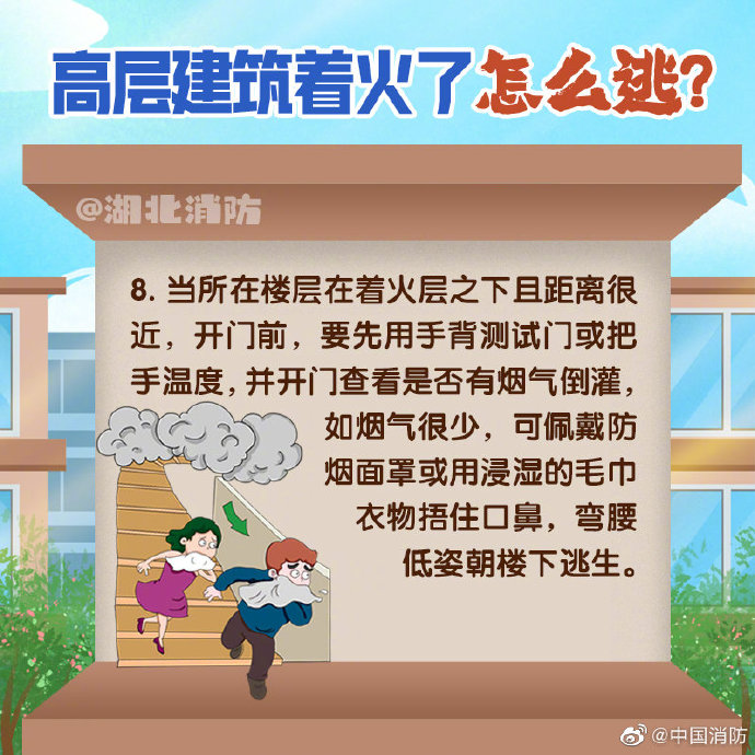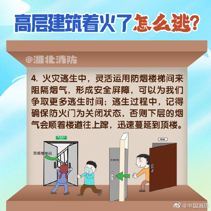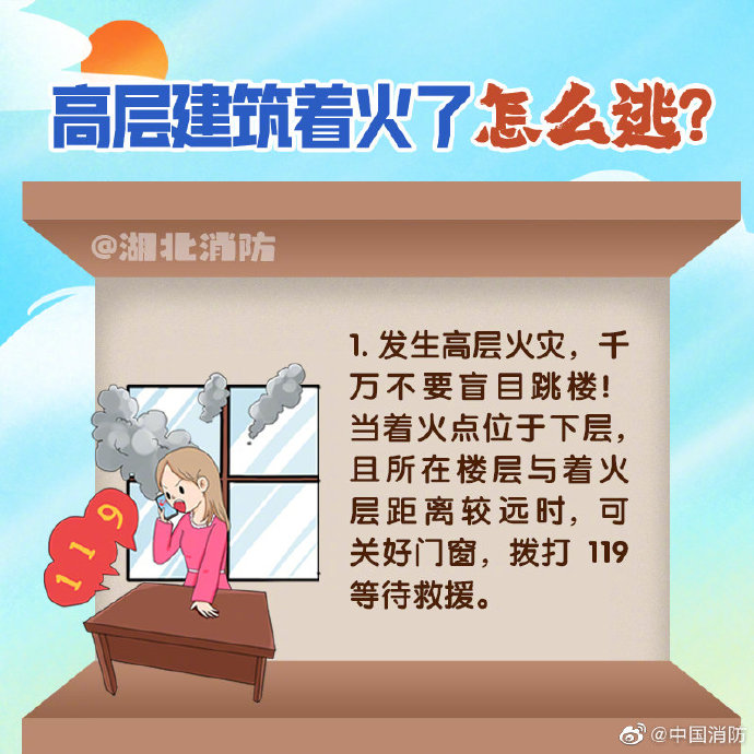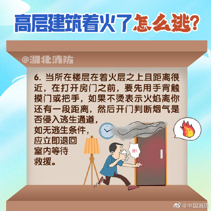 高层建筑楼层多、体量大、建筑结构复杂,人员相对密集,一旦发生火灾,火势蔓延快、人员疏散难、扑救难度大。危险面前,选择正确的逃生方式真的很重要,当不具备逃生条件时,千万别忙碌出门逃生。更多知识,戳图学习~