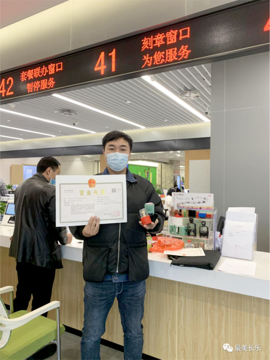 “今天我一分钱没花,一小时不到就拿到了营业执照,现在又对这几枚公司印章的费用实行全部减免,这一便民服务真的太给力了!”