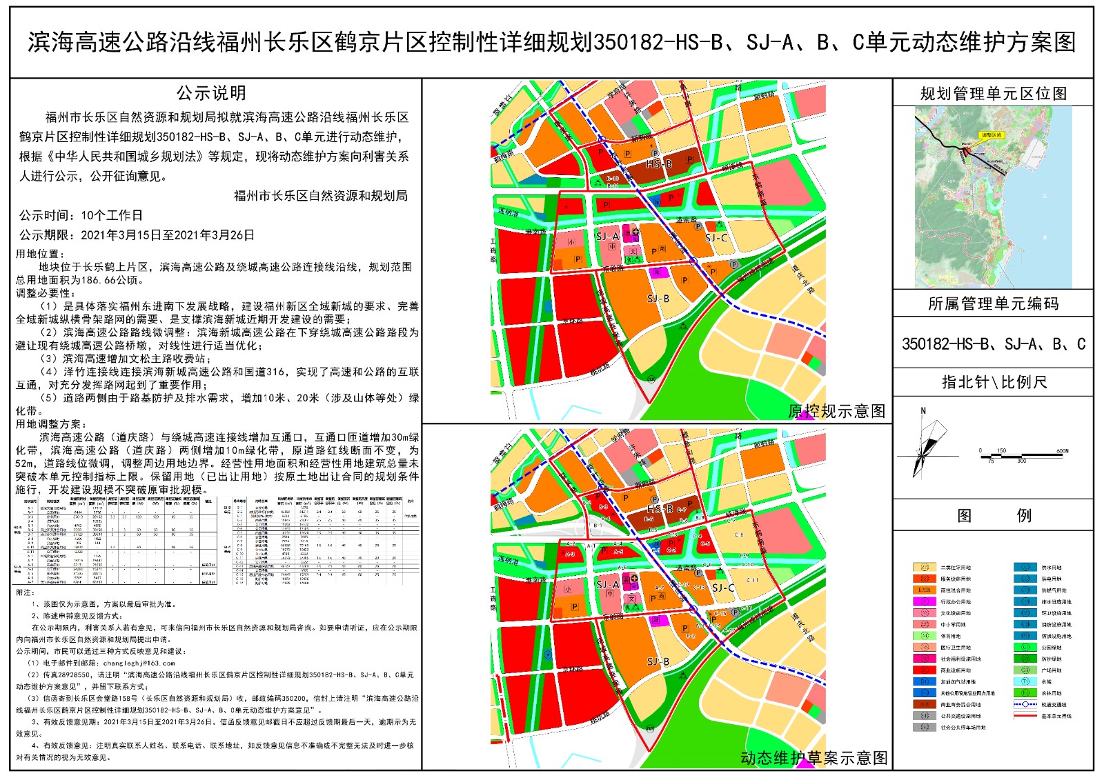 关于滨海高速公路沿线福州长乐区鹤京片区控制性详细规划350182-HS-B、SJ-A、B、C单元动态维护的公告
