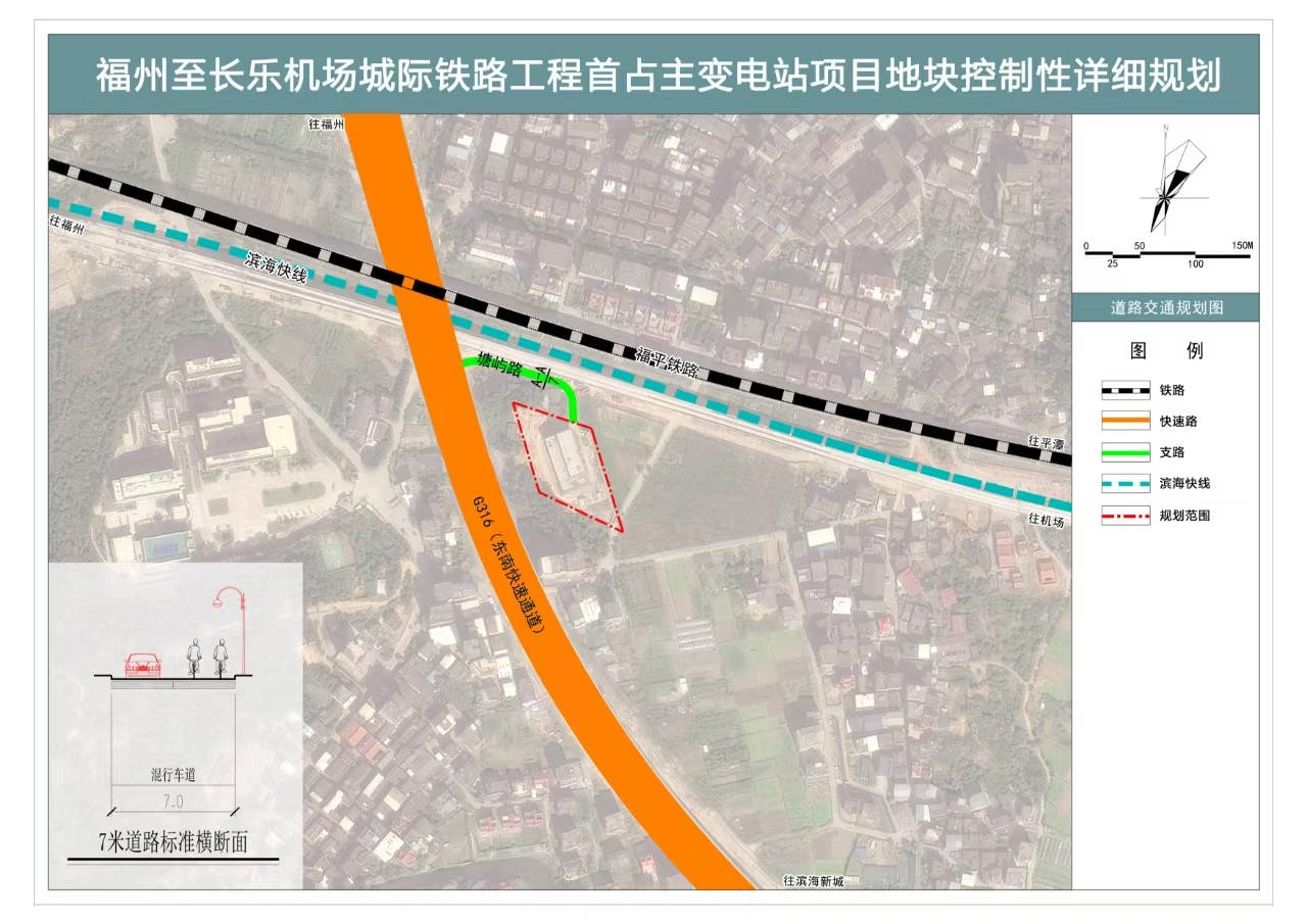 福州至长乐机场城际铁路工程首占主变电站项目地块控制性详细规划的公告