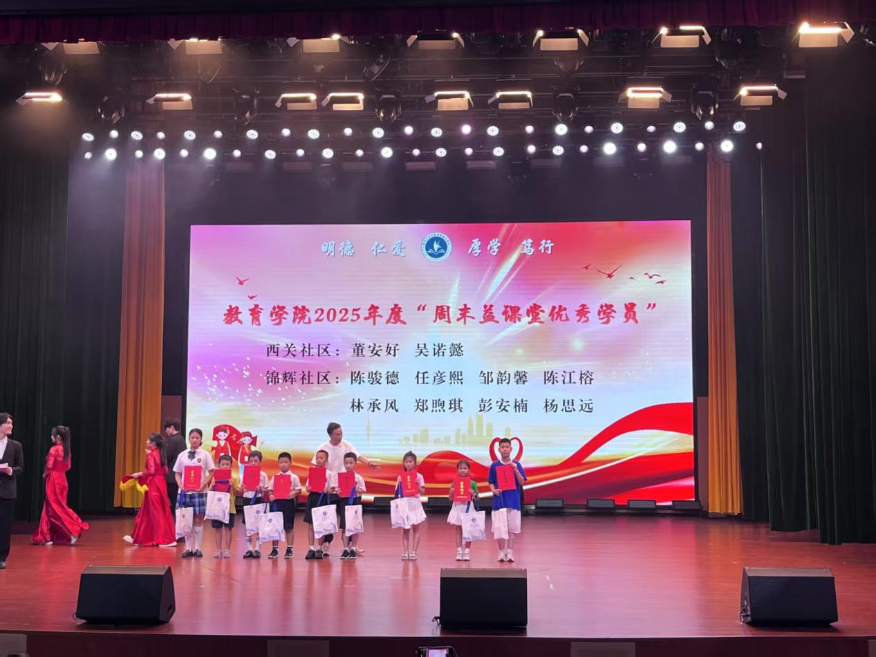 颁奖环节的灯光格外温暖,当社区里参与周末益课堂的孩子们与高校志愿者们接过“优秀学员”“优秀志愿者”的奖状时,忽然读懂了“双向奔赴”的意义。就像获奖志愿者说的:“在社区课堂里,我们教孩子们知识,也从他们的笑容里收获了温暖。”是啊,校地合作就像一片沃土,让志愿服务的根须在社区里扎得更深,也让这份温暖有了生长的力量。