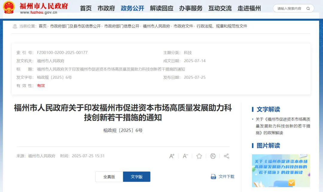 《福州市促进资本市场高质量发展助力科技创新若干措施》已经市政府研究同意,现印发给你们,请认真抓好贯彻落实。