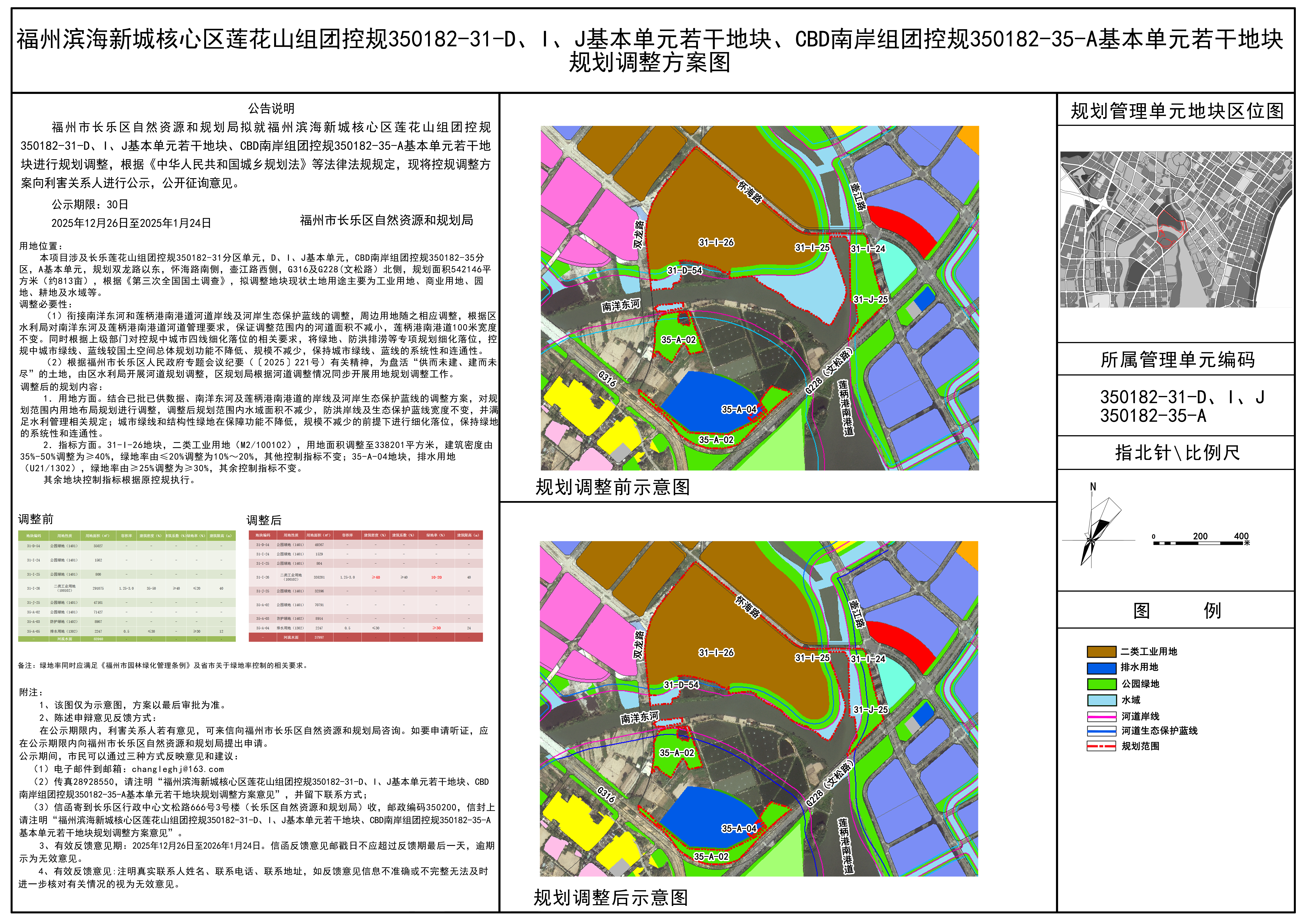 根据州市长乐区人民政府专题会议纪要(〔2025〕221号),为盘活“供而未建,建而未尽”的土地,会议决定由长乐区自然资源和规划局、区水利局按规定程序开展用地规划和河道规划的调整论证,按规定开展地块控规调整工作。现控规调整工作已按程序启动,于2025年12月11日通过规划调整评审会。根据《城乡规划法》、《福建省城市控制性详细规划管理暂行办法》及《福州市人民政府办公厅关于进一步规范规划用地管理的实施意见》(榕政办〔2020〕29 号)文件,现公告如下: