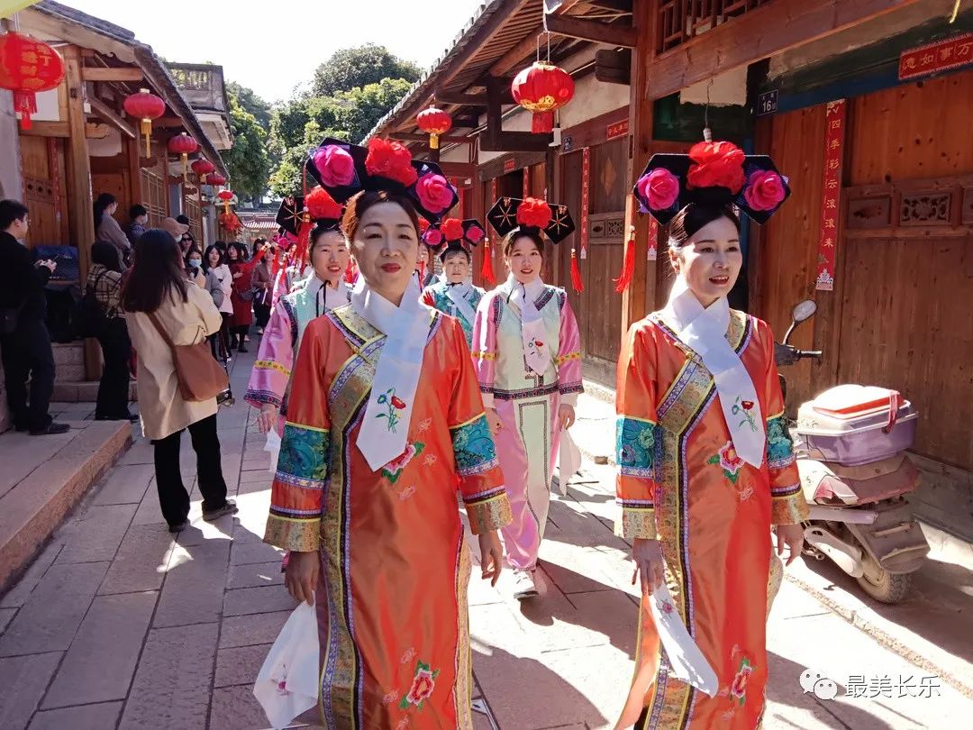 来自航城街道70多名妇女穿上满族服饰,聆听讲解员述说琴江文化历史故事,在琴江村新开发的研学项目中玩起了“穿越”。