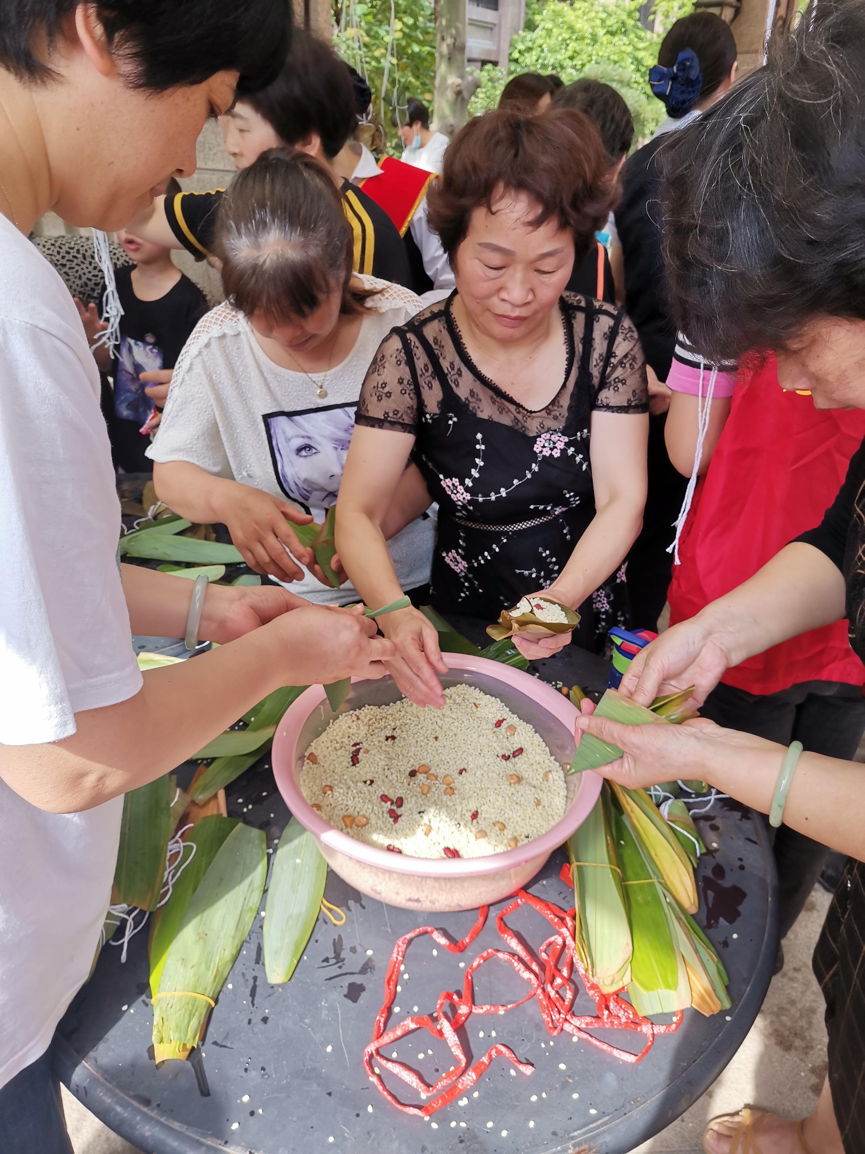 工作人员一早就买好了糯米、粽叶、红豆等包粽子的材料,大家欢聚一堂。现场有包粽子娴熟的“能手”,有从未包过粽子的“新手”,几名男同志也积极地加入进来,大家自由分组学包粽子,并进行了包粽子比赛。能手帮新手,手把手的相互传授经验,边聊天、边包粽子,还时不时讨论一下端午节各地的习俗、粽子的来历、粽子的包法等等,现场欢声笑语,其乐融融。