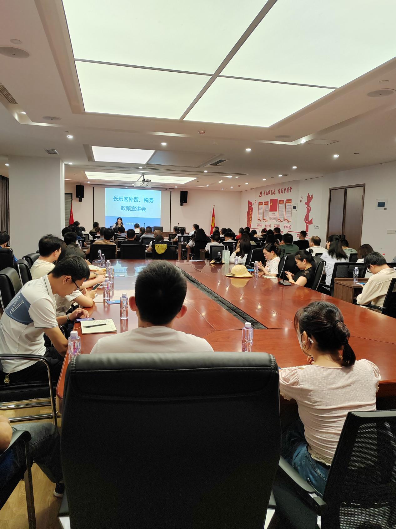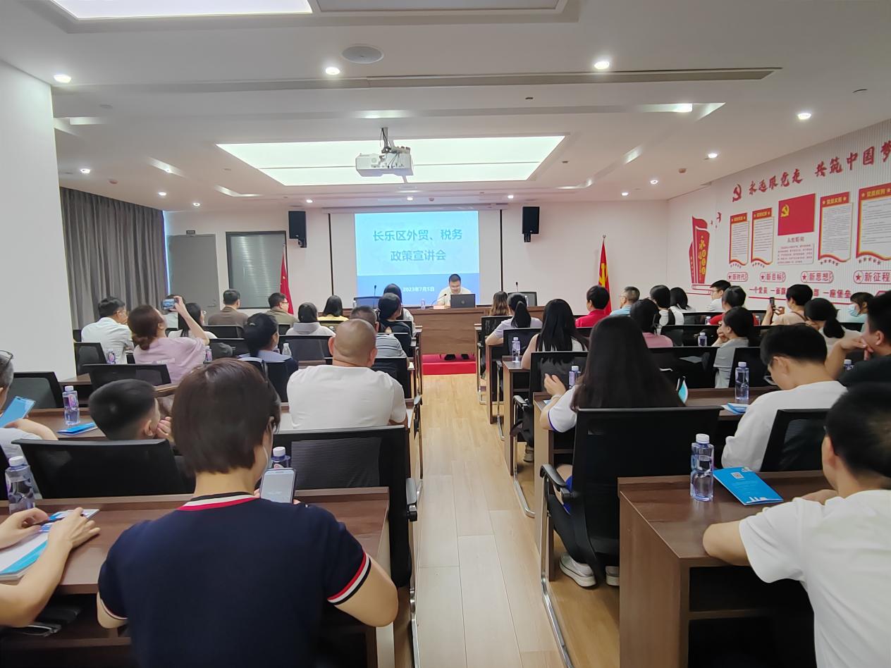 为打造良好营商环境,助力外贸企业发展,推动我区外贸提质增效,7月5日上午,2023年长乐区外贸、税务政策宣讲会圆满召开。长乐区商务办陈伟斌副主任主持会议,全区66家外贸进出口企业负责人参会。