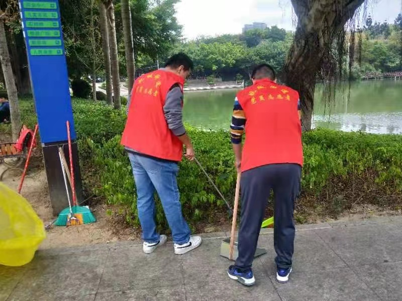 街道机关党总支党员志愿者在长山湖公园开展“七一”志愿服务活动