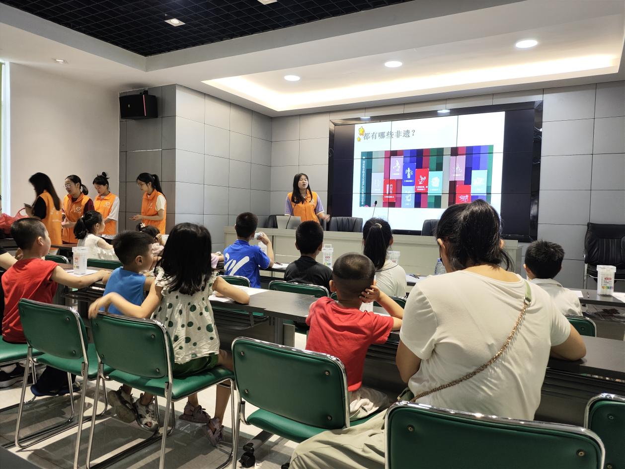 锦辉社区党员志愿者向孩子们介绍中国非遗文化--扎染