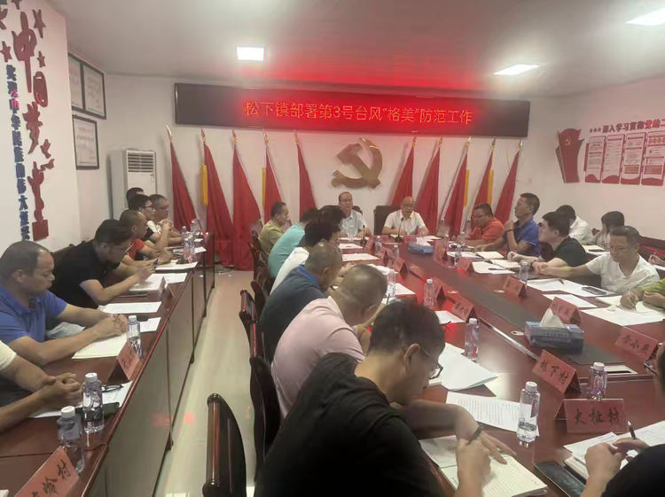 松下镇召开防台工作部署会,细致部署防汛防台各项工作,理顺防汛指挥体系和工作机制,第一时间启动防台风防汛预案,全体党员干部严阵以待,坚决克服麻痹思想和侥幸心理,驻镇守村,提前进入战斗状态,将各项防御工作落细、落实、落到位。绷紧责任弦,严格落实领导带班,包村干部深入所包村,强化信息沟通共享,形成“镇里有部署谋划、村里有细化落实”的工作格局,全镇上下一心,全力以赴防抗台风“格美”。
