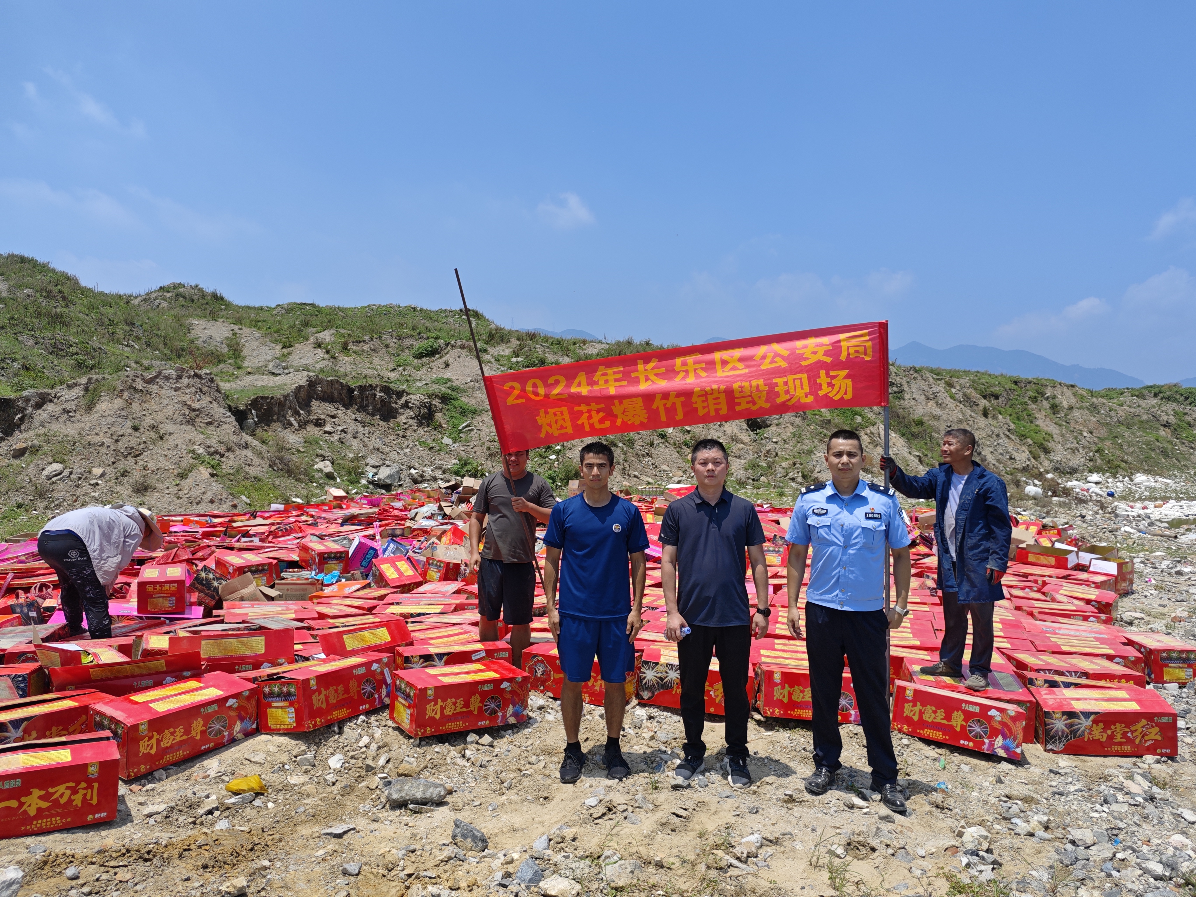 根据《烟花爆竹安全管理条例》《福州市烟花爆竹销售和燃放管理办法》《福州市公安机关烟花爆竹销毁工作规范》等精神,2024年8月2日长乐区烟花办牵头应急管理局、公安局、消防救援大队、卫健局等成员单位开展销毁非法烟花爆竹工作。对行政执法案件中依法查扣的烟花爆竹,开展安全、无害化集中销毁,旨在消除潜在安全隐患,保障公共安全。此次销毁工作共将2023年5月以来收缴的各类非法烟花爆竹3070件全部予以销毁。整个销毁过程历时4个小时。