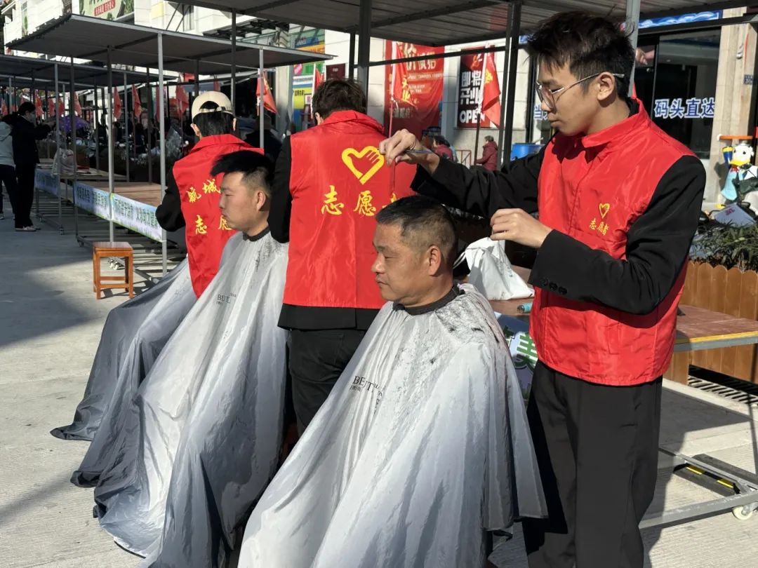 现场还免费派送暖心汤圆,提供免费理发、爱心缝补健康义诊等服务,受到群众一致好评。