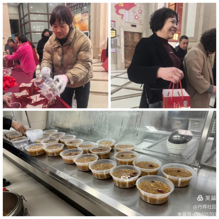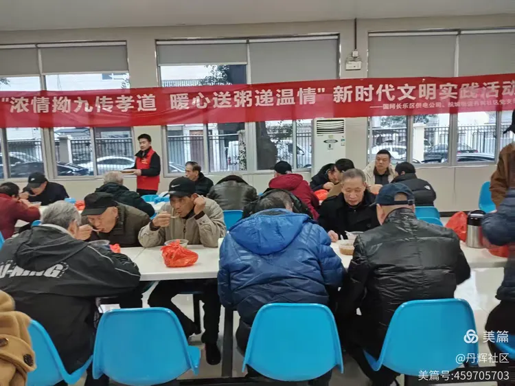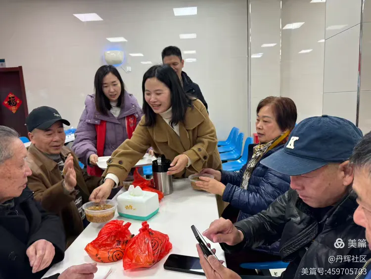 一大早志愿者们就将由红枣、桂圆、花生、糯米等碰撞在一起熬煮出来的拗九粥,送到丹辉社区活动现场,现场飘散着阵阵拗九粥香甜的味道。志愿者们和社区工作人员将一碗碗热乎的拗九粥送到老人们手中,老人们笑着接下一碗粥,美美地吃上一口,感受节日带来的温暖。