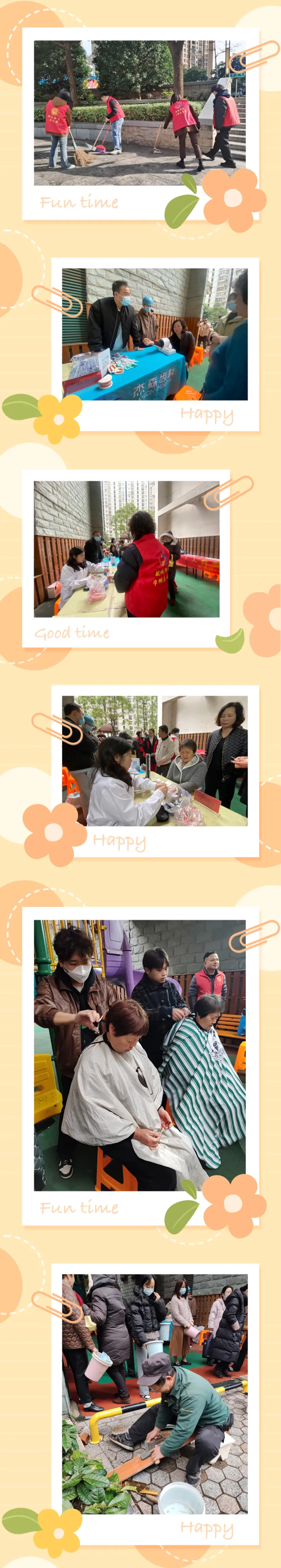 在活动中,巾帼志愿者们手持扫把、垃圾铲、垃圾袋到达划分清洁区域,大家齐心协力进行“护绿除杂”大行动;针对口腔健康护理咨询,杰森口腔护理人员一一给出详尽解答;义诊,社区医生为老人们免费测量血糖血压,并展开健康咨询,获得长者们的好评;义务理发,理发师精湛的技艺、贴心的服务,赢得了居民朋友的点赞;免费磨刀,磨刀师傅将一把把生了锈的菜刀变得铮亮、锋利。志愿者们的到来让大家感到非常开心。