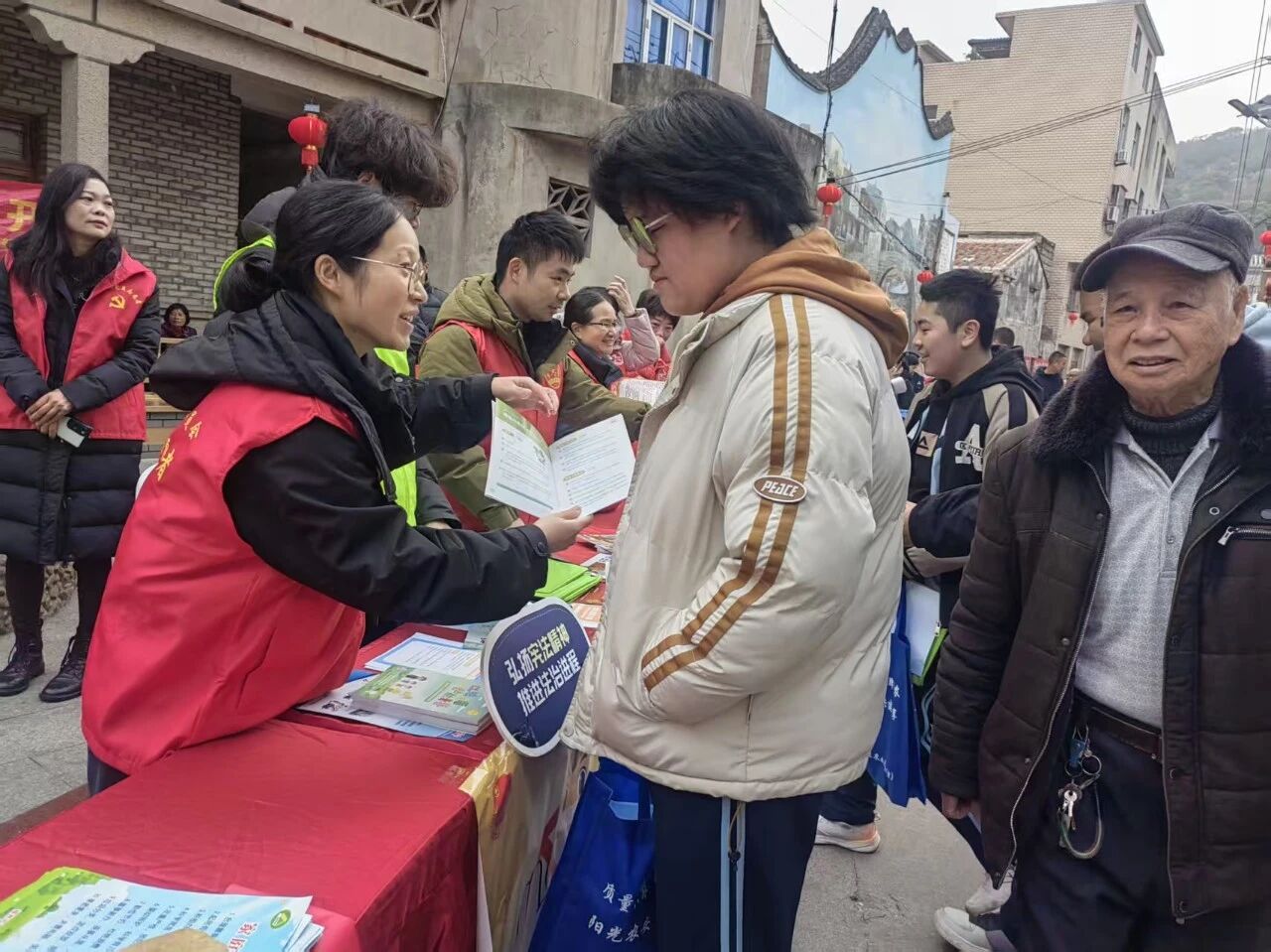 为深入学习宣传贯彻习近平新时代中国特色社会主义思想和党的二十届历次全会精神,充分发挥文化科技卫生“三下乡”活动集中示范效应,切实把服务送到群众心坎上,2月3日,福州新区(长乐区)2026年文化科技卫生“三下乡”集中活动走进江田镇三溪村。长乐团区委主动作为、精准发力,组织一支充满青春活力的青年志愿者队伍,依托活动平台开展多元化志愿服务,用实际行动诠释“奉献、友爱、互助、进步”的志愿精神,传递冬日里的温暖与力量。