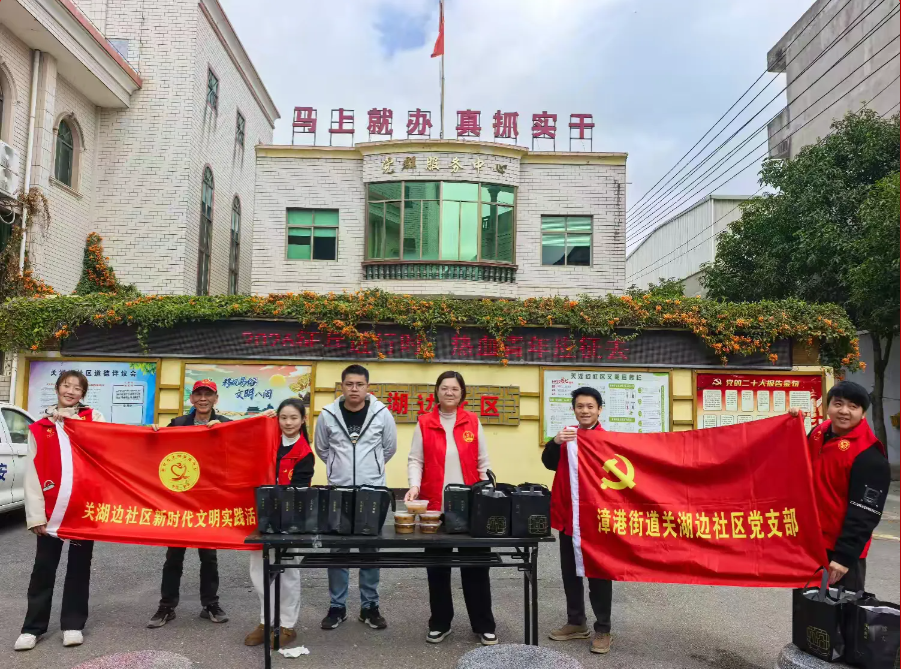 岁岁拗九至,浓浓敬老情。2026年3月17日,为传承福州传统民俗文化,弘扬孝老爱亲的传统美德,在拗九节来临之际,关湖边社区党支部、关湖边社区新时代文明实践站联合榕大宴会中心和共建单位滨海水务有限公司,在榕大宴会中心门口暖心开展拗九节送粥敬老活动,以一碗热粥传递邻里温情,让孝德之风浸润社区。