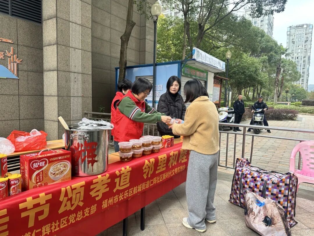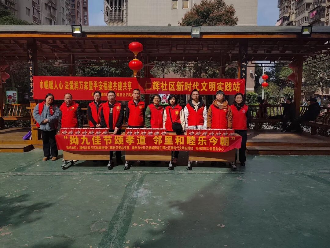 为进一步培育和践行社会主义核心价值观,传承中华孝道文化,营造“尊老、敬老、爱老、助老”的良好氛围,构建和谐的社会环境,2026年3月17日,正值传统拗九佳节,仁辉社区党总支联合仁辉社区新时代文明实践站,携手美域、万业、民生三个小区党支部、航城街道妇联、仁辉社区妇联、福建怡家园物业公司、福建鼎力物业公司、福建贤内助物业公司及福州慈恩公益服务中心,在皇庭美域、民生小区与万业锦江城三个小区同步开展"拗九佳节颂孝道 邻里和睦乐今朝"主题活动。