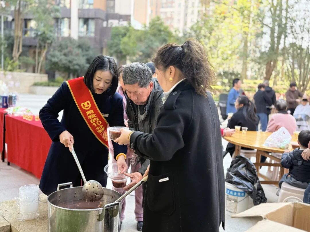 据仁辉社区党总支书记介绍,本次活动创新采用“社区+业委会+物业+公益组织”的联动模式,整合多方资源形成服务合力。与此同时,仁辉社区干部、业委会、小区物业组成慰问小组,带着熬制好的拗九粥,逐一走访社区退休老党员和腿脚不便的老人,用实际行动传递社区温暖。