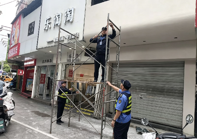 快速恢复市容,保障城市秩序。台风过境后,市容管理组第一时间对破损广告牌、施工围挡及倒伏共享单车进行清理整治;环卫作业组同步组织保洁企业清运积存垃圾,并对受损环卫设施进行检查修复,全力保障城市环境整洁有序。