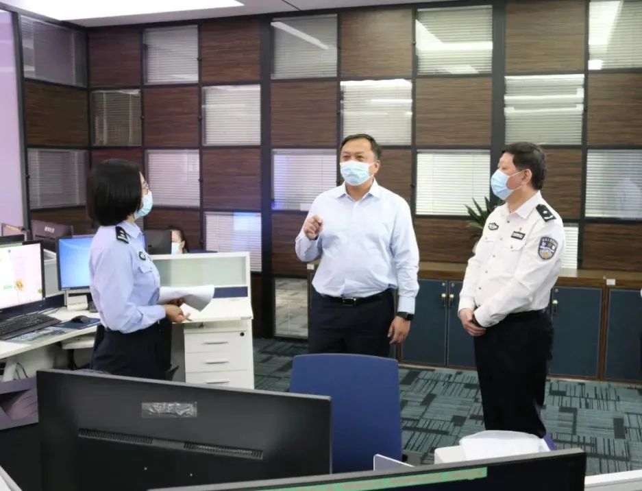 张帆一行首先来到区公安局指挥中心,详细了解区域核酸检测监控平台的实时运行过程,仔细查看各乡镇(街道)、村(社区)等核酸检测采样点的情况,现场调度核酸检测采集工作。