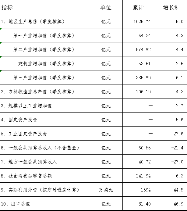 长乐区2025年1-9月国民经济主要经济指标完成情况