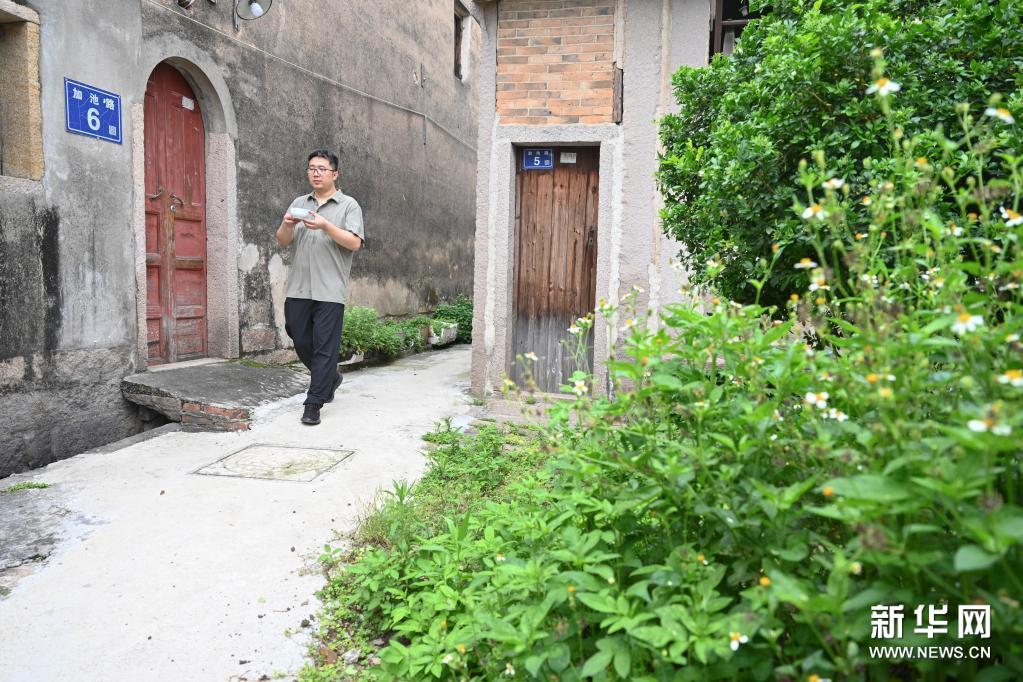 5月21日,在福建省福州市长乐区古槐镇高楼村,陈国锐端着米糊前往他的工作室。新华社记者 宋为伟 摄