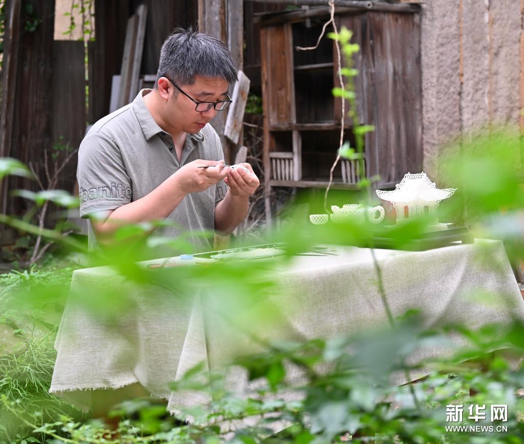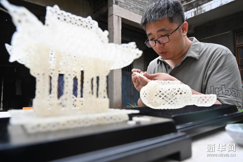 5月21日,在福建省福州市长乐区古槐镇高楼村,陈国锐在制作高楼米线工艺品。新华社记者 宋为伟 摄