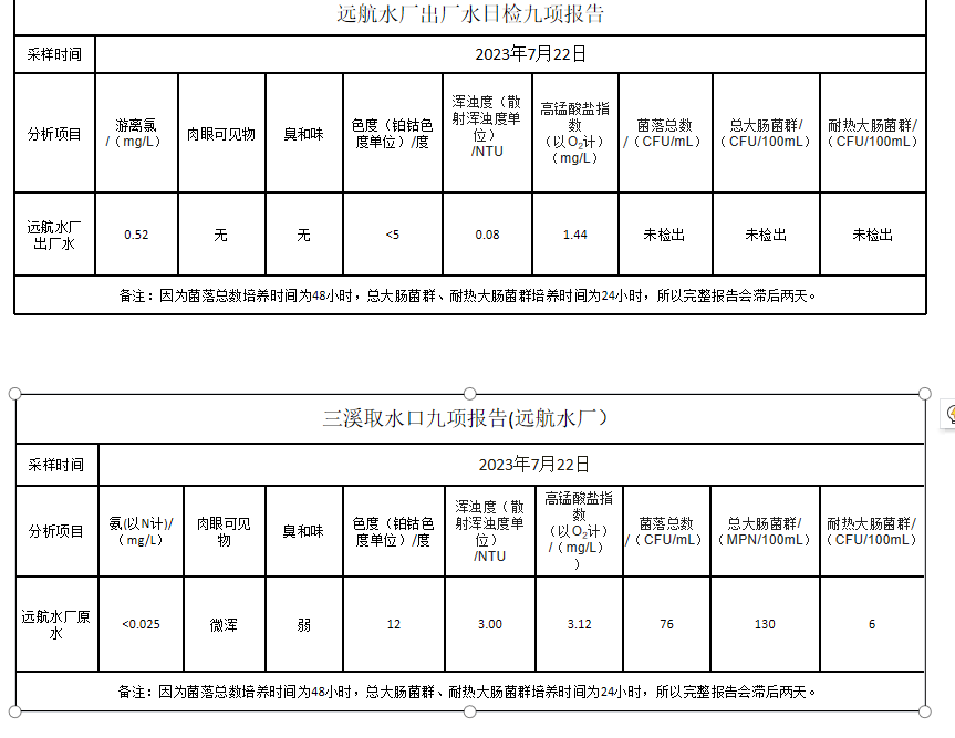 根据《福建省城市供水水质信息公开暂行管理办法》,为加强供水公司水质管理,加大涉及百姓民生方面信息的公开力度,现将长乐远航供水公司远航水厂和东区水厂取水口原水九项及出厂水九项每日检测报告对外公开公示,接受广大市民监督。