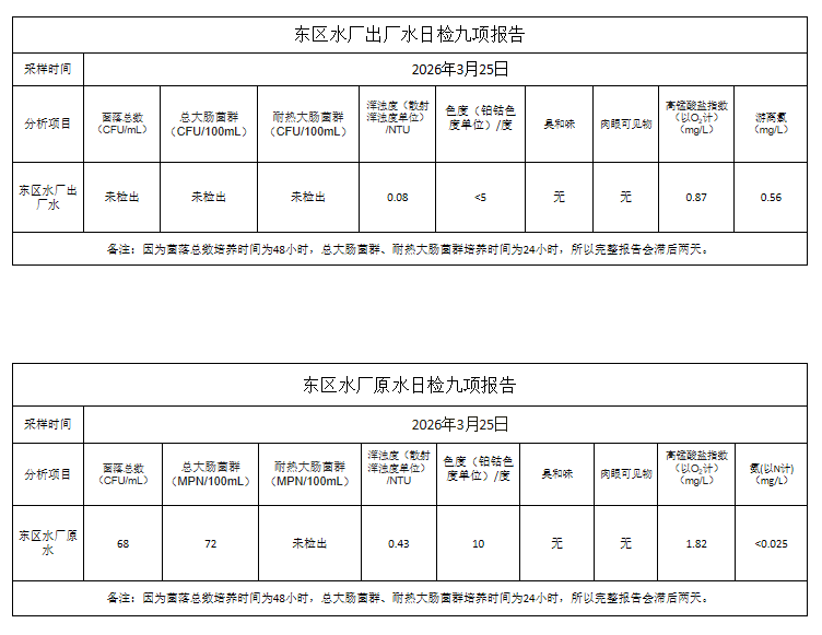 长乐远航供水公司2026年3月25日水质检测
