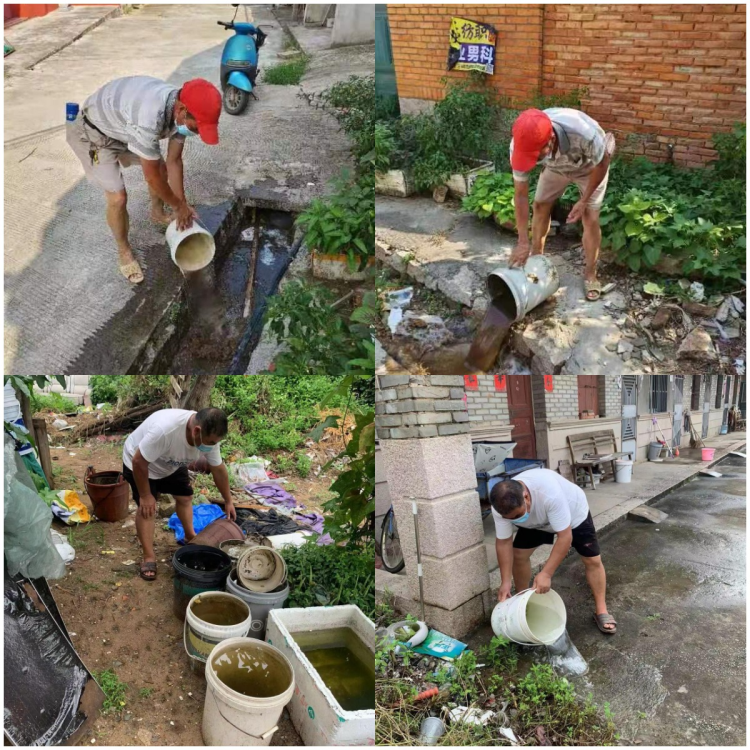 为防止登革热等传染病的发生,降低成蚊密度,控制蚊虫滋生,切实保障人民群众生命财产安全。湖南镇党员志愿者们在辖区开展“翻盆倒罐”清积水活动。