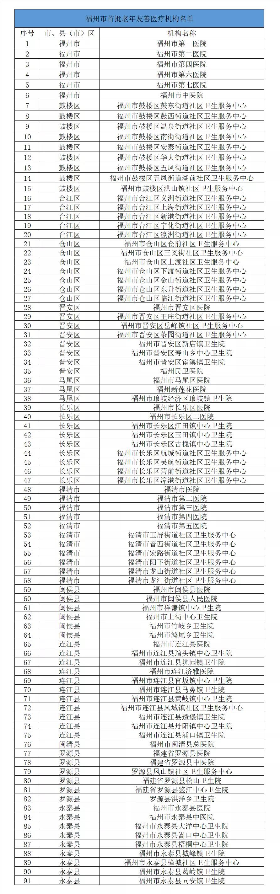 好消息!全省率先!福州首批91家老年友善医疗机构名单公布,长乐9所医疗机构入选!!!它们分别是: