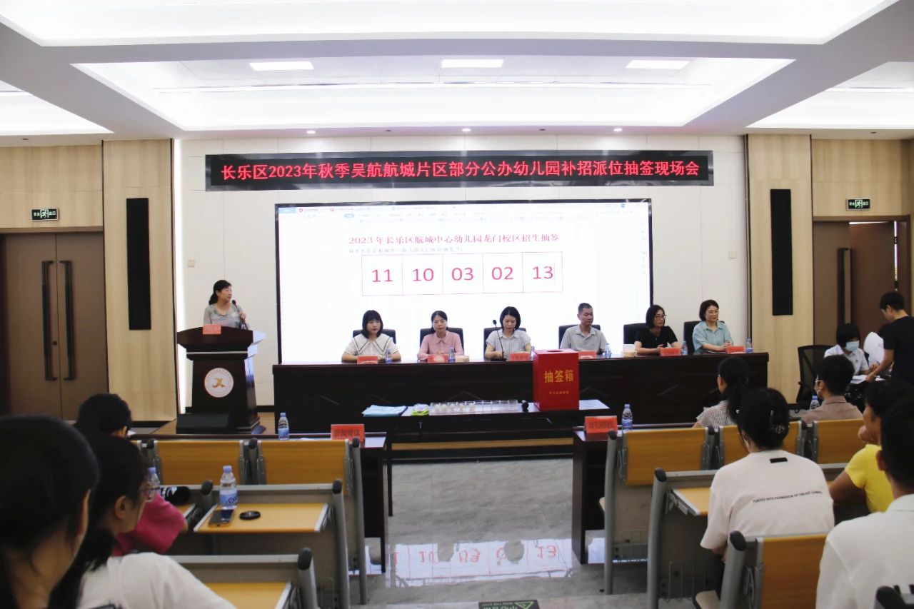 今天,吴航航城片区部分公办幼儿园补招派位抽签现场会在区教育局举行,区人大、区政协、区教育局、相关街道部门负责人、公证处公证员以及家长代表等见证了抽签过程。