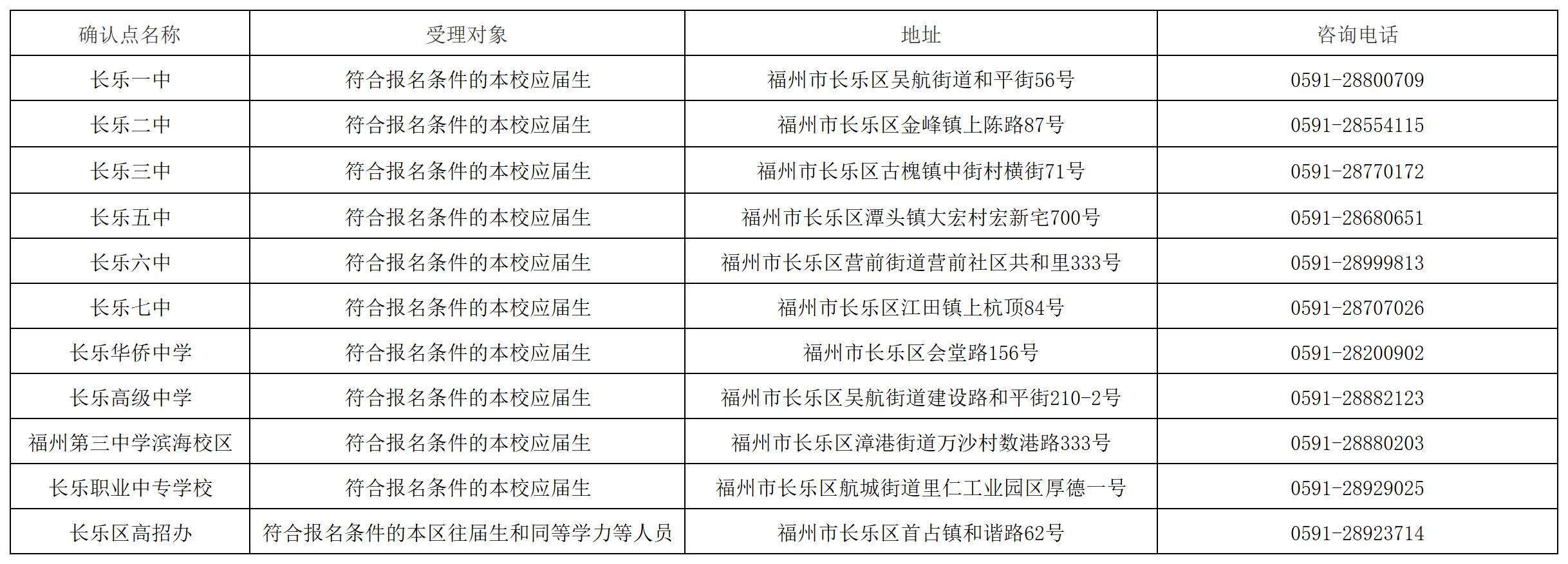 根据闽教学〔2025〕17号《福建省教育厅关于做好2026年高职院校分类考试招生报名工作的通知》要求,现将我区报名确认点公示如下: 注:网上预报名时间:2025年11月4日—11月9日,现场确认时间:2025年11月10日—11月15日。