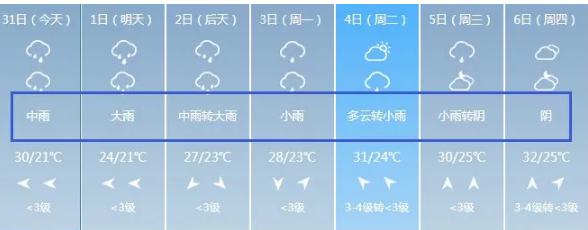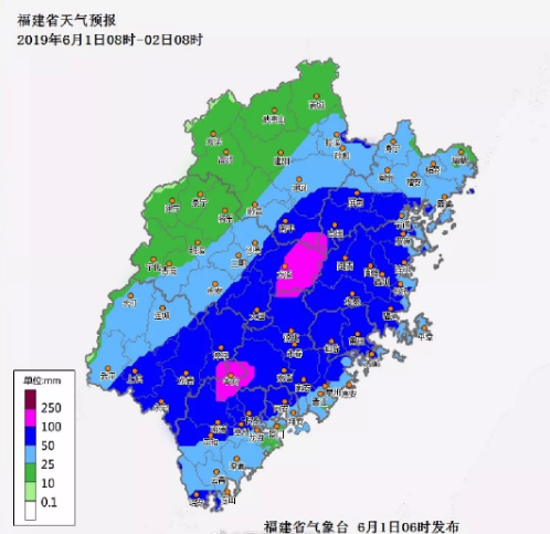 会议预测,6月1日,全市小到中雨,闽清中南部、永泰北部、闽侯中部、连江南部和福州市区的部分乡镇,有大雨到暴雨。24小时雨量为30~50毫米,局地超过60毫米。